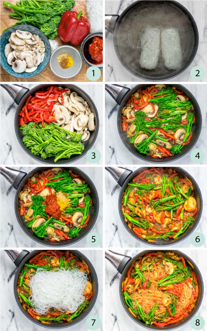 If you love flavorful food, you came up to the right spot. You can except also the right texture thanks to broccoli and mushrooms, an amazing flavor from the sweet chili sauce and curry paste.